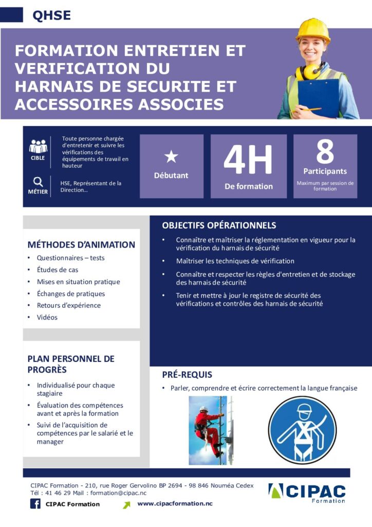 - Connaître et maîtriser la réglementation en vigueur pour la vérification du harnais de sécurité