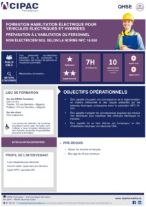 - Être capable d’acquérir une connaissance de la règlementation en matière d’électricité et des risques présentés par les batteries électriques embarquées selon la publication NFC 18-510