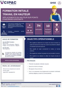 - Être capable de déterminer les risques de chute de hauteur au poste de travail afin de choisir les moyens de protections adaptés et d’adopter les bonnes postures.