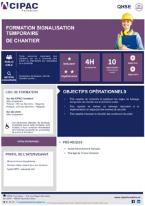 - Être capable de connaître et appliquer les règles de balisage temporaire de chantier sur le domaine routier
