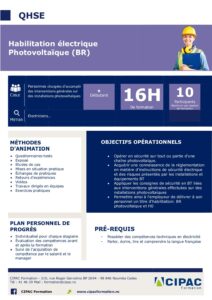 - Permettre ainsi à l’employeur de délivrer à son personnel un titre d’habilitation: BR photovoltaïque et H0