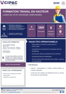 - Avoir suivi un cursus de formation sur le travail en hauteur et ses risques