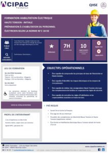 - Être capable de connaître les règles d’habilitation et les responsabilités associées en haute tension