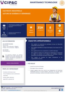 - Être capable de comprendre les principes de base de l’électricité industrielle en basse tension